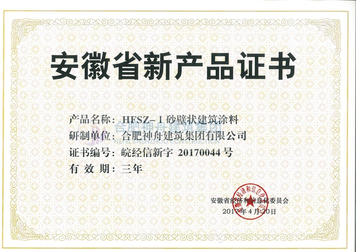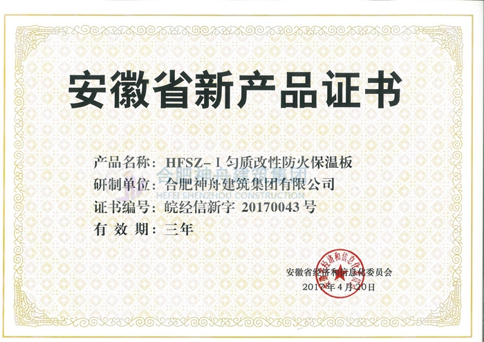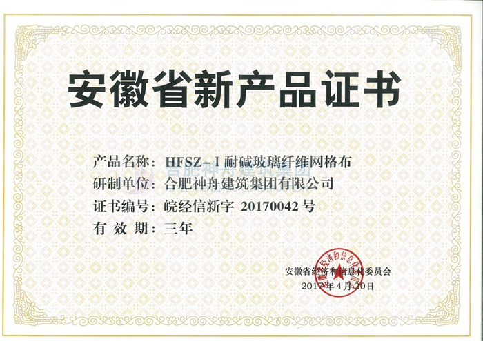 “竣捷”牌勻質(zhì)改性防火保溫板、耐堿玻璃纖維網(wǎng)格布、真石漆通過安徽省經(jīng)濟(jì)和信息化委員會的評審,榮獲了安徽省新產(chǎn)品榮譽證書